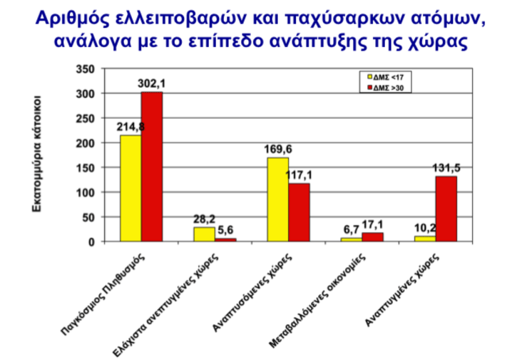 Ποσοστά παχύσαρκων και λιποβαρών ανάλογα με το επίπεδο ανάπτυξης μιας χώρας